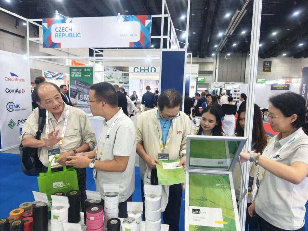 9月9日至11日,第31届亚洲电力能源展(Enlit Asia 2025)在泰国曼谷BITEC展览中心举行。亮线科技(Brite-Line)携多款高端橡胶胶带及PVC电工胶带产品亮相本次展会,其中BLV-18系列电工胶带凭借其cUL美加双认证身份,成为展台焦点,吸引了诸多国际买家的关注。