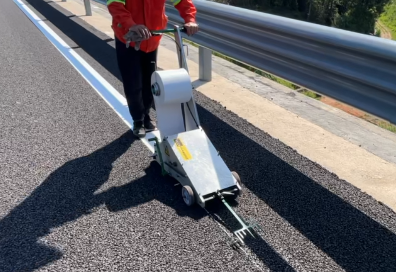 亮眼的产品表现,离不开先进的设备支撑。亮线科技搭配使用自主适配的全自动标线铺贴机,该设备最大优势在于车速快,能以高效的作业速度,实现“基材放卷—精准定位—压合固定”一体化操作。相比人工铺贴,不仅大幅提升铺贴速度,加快整体施工进度,还能有效避免人工铺贴易出现的偏移、褶皱问题,确保每一段标线都精准、平整,为项目高效推进奠定坚实基础。